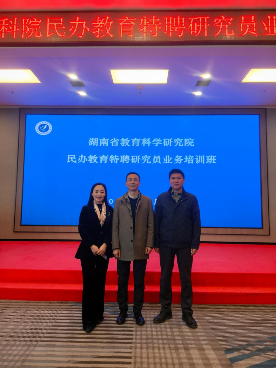 2025年12月9日,由湖南省教育科学研究院主办的省级民办教育特聘研究员业务培训班在长沙正式开班。湖南信息学院校长助理、党政办主任陈伟,人事处处长徐星星,通识教育学院院长、湖南省数智化国际传播研究中心主任艾艳红,等三位教师代表参加培训。